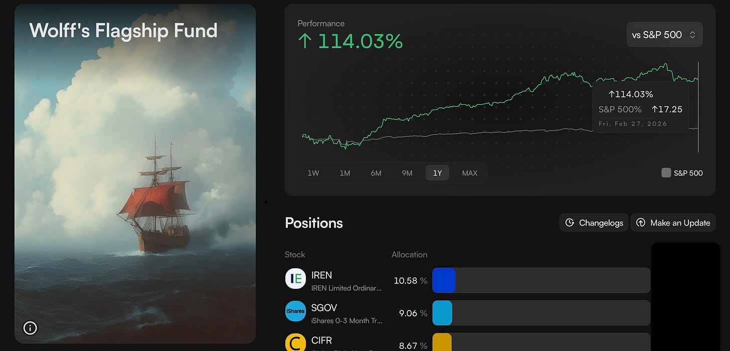 20% Wolff’s Top 15 Fund: growth factor fund; conditions looking promising for my top growth picks at current prices; more investors seem to be acknowledging that IREN and CIFR in particular remain undervalued at these prices